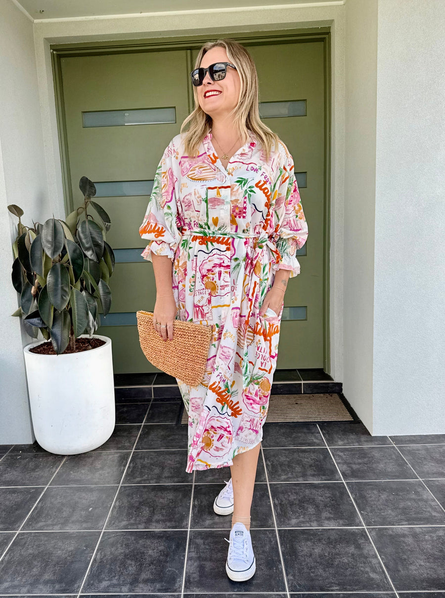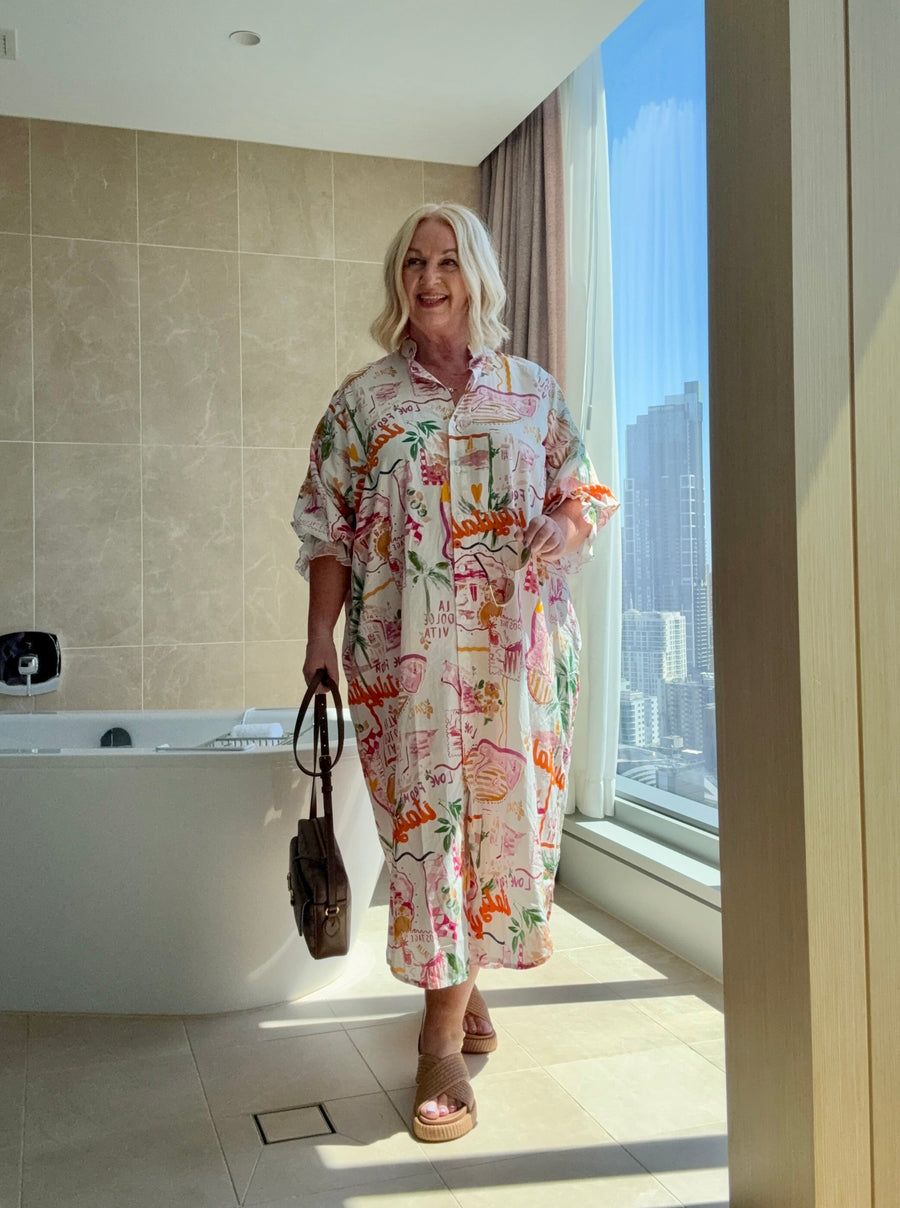 This dress is so versatile and can be worn so many ways it’s endless, wear it as a dress or open all the buttons and wear it as a jacket.